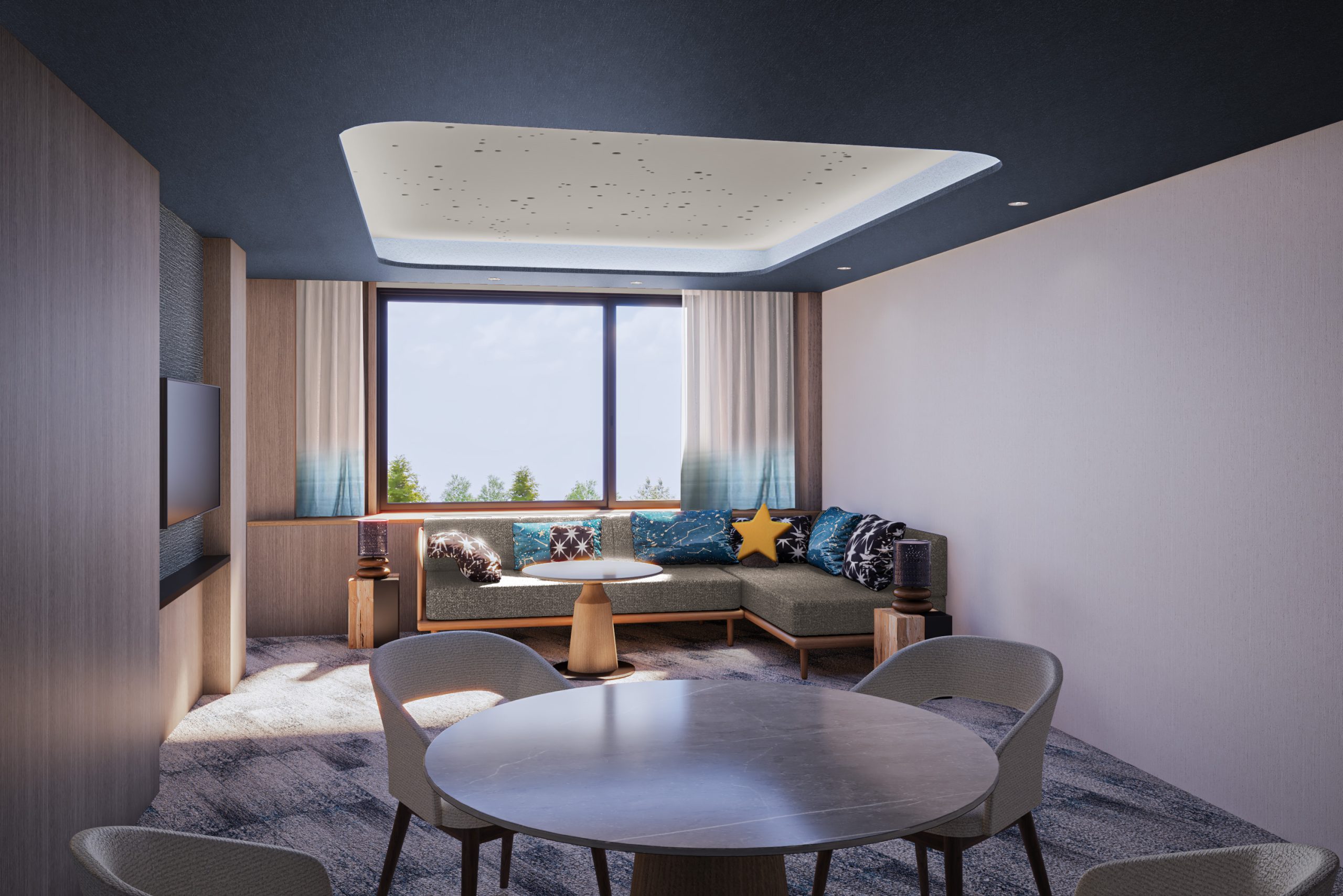 やわらかいカラーリングを用いた温かみのある空間で、ご家族で楽しい旅の時間をお楽しみください。